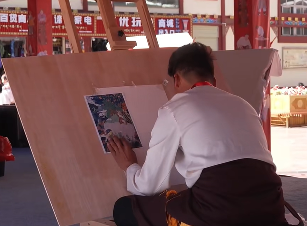 該賽事匯聚了11縣(區(qū))60余名選手同臺(tái)競技,讓非遺技藝綻放璀璨光彩?;顒?dòng)現(xiàn)場,極具特色的“十韻匠心”手繪形象圖與立體打卡點(diǎn)相映成趣,營造出濃厚的文化氛圍。首日賽事聚焦兩大傳統(tǒng)技藝——“指韻匠心·唐卡繪畫技藝”與“香韻匠心·藏香制作技藝”,參賽選手既有堅(jiān)守?cái)?shù)十載的老藝人,也有創(chuàng)新傳承的新藝人,新老同臺(tái)共譜“薪火相傳”的生動(dòng)篇章。