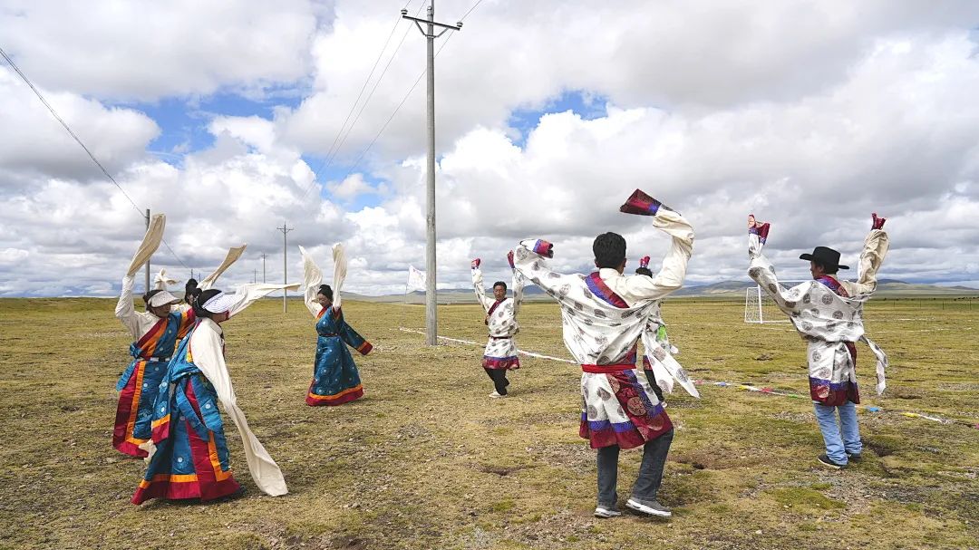 各隊(duì)競(jìng)技熱情高昂,賽場(chǎng)上精彩場(chǎng)景不斷,球員拼搏身影與草原交相輝映,展現(xiàn)羌塘運(yùn)動(dòng)活力。賽場(chǎng)外,各方協(xié)同保障有力。駐村工作隊(duì)聯(lián)動(dòng)色尼區(qū)多部門統(tǒng)籌籌備,賽事融入格薩爾王說唱、草原鍋莊等非遺展演,讓觀賽者感受羌塘文化底蘊(yùn)。