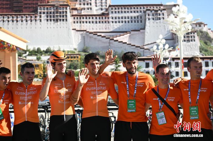 圖為開(kāi)幕式上巴斯克電信職業(yè)隊(duì)隊(duì)員在布達(dá)拉宮廣場(chǎng)合影留念。貢嘎來(lái)松 攝