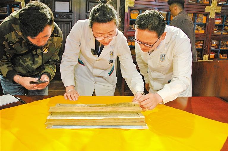 記者了解到,這幾年在以《四部醫(yī)典》為代表的藏醫(yī)藥文獻(xiàn)遺產(chǎn)開發(fā)利用方面有了新成果。自治區(qū)藏醫(yī)院正積極探索古籍?dāng)?shù)字化保存和復(fù)制路徑。除“達(dá)旦版”《四部醫(yī)典》外,其他版本均已完成仿真影印出版并發(fā)行。同時(shí),相關(guān)古籍文獻(xiàn)的影印文字對(duì)照版也在自治區(qū)藏醫(yī)院創(chuàng)建的“藏醫(yī)藥與天文歷算數(shù)字化平臺(tái)”內(nèi)網(wǎng)上線,不久將完成全部古籍的數(shù)字化并實(shí)現(xiàn)對(duì)外開放。
