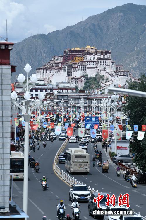8月7日,隨著西藏自治區(qū)成立60周年大慶臨近,拉薩街頭處處洋溢著喜慶氛圍。市區(qū)主干道的路燈桿上,嶄新的國旗與彩旗有序懸掛,鮮艷奪目。人行天橋完成升級改造,裝飾板上國旗、石榴籽、牡丹花、浪潮、山川、連心結(jié)、雪山與哈達(dá)等元素相互交融,別具特色。工作人員正緊鑼密鼓地布置花壇,五彩花卉將為城市增添斑斕色彩。此外,各大廣場、公園也在裝點,準(zhǔn)備迎接八方來客。拉薩正以最美姿態(tài),迎接這一重要時刻。圖為市區(qū)主干道上懸掛的彩旗。