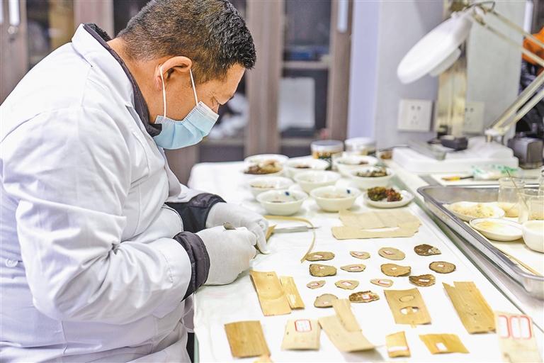 “貝葉經(jīng)修復技術在全世界沒有統(tǒng)一的標準,也沒有具體的修復流程。我們是一步步探索和創(chuàng)新,才取得了重要突破?!辈歼_拉宮管理處文??乒ぷ魅藛T冷本凱介紹說。