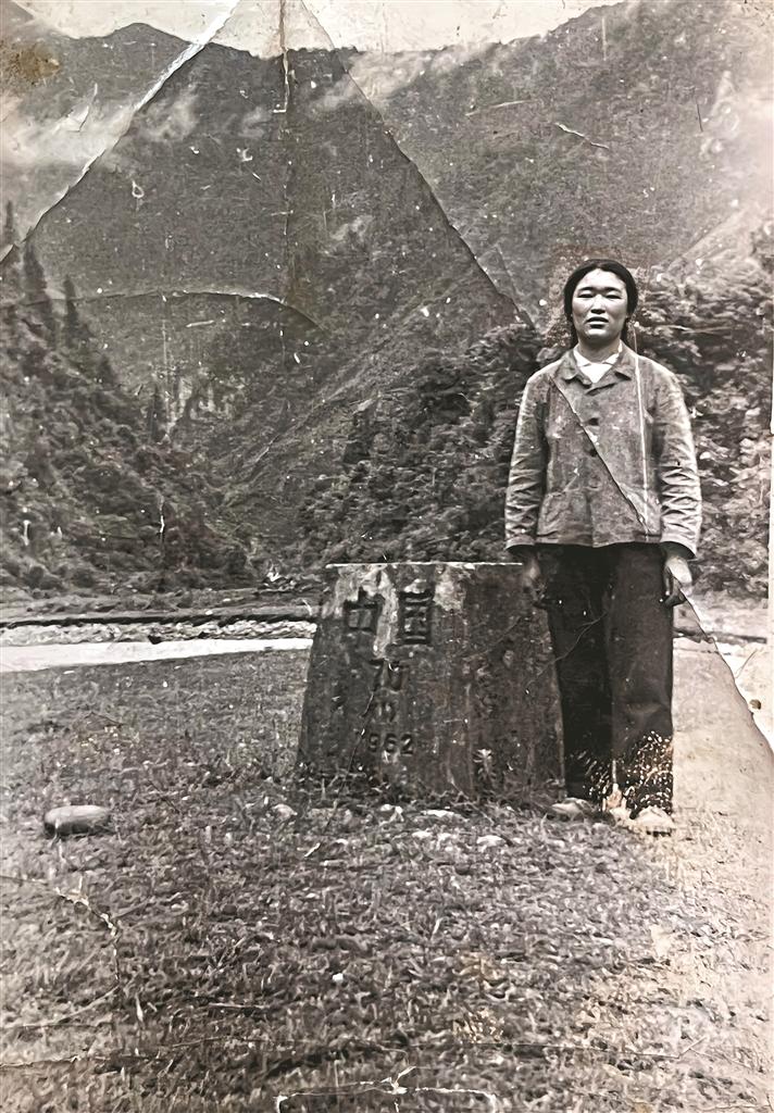 第一張照片總是最引人注目——拍攝于1965年的黑白相片里,年輕的石達(dá)普芝站在中尼邊境界碑旁,她腳上穿的是沾滿泥巴的布鞋,身后是茫茫的大山。