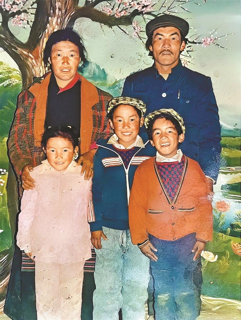 相冊(cè)的第二頁(yè),夾著一張略顯褪色的彩色照片。這是1996年的藏歷新年,全家人第一次走出大山,到日喀則置辦年貨時(shí)拍的。照相館的師傅讓他們挨著布景站好,“咔嚓”一聲,留下了這個(gè)家庭的第一張全家福。