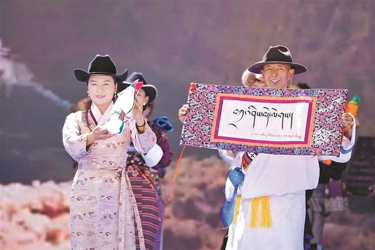 非遺展演秀環(huán)節(jié)中的藏文書(shū)法展示。