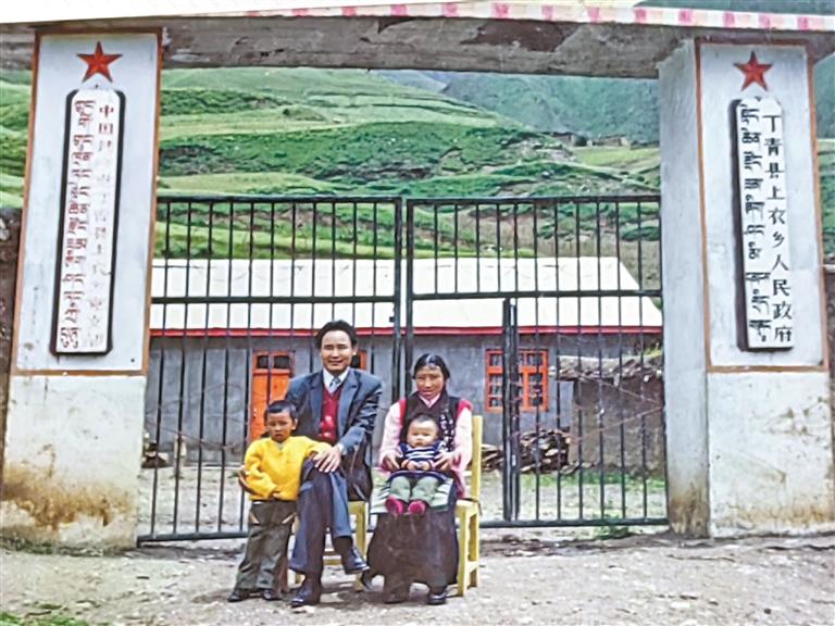 在昌都市丁青縣阿旺慈誠老人的家中,記者看到了一張老照片。老人介紹,那是1988年,年輕的阿旺慈誠和愛人抱著兩個兒子,在上衣鄉(xiāng)政府(如今合并為尺牘鎮(zhèn))門前留下的珍貴合影。