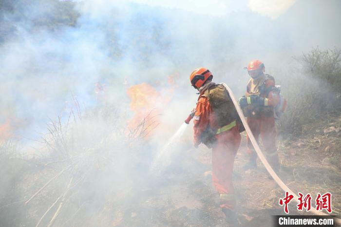 演練現(xiàn)場,森林消防進(jìn)行滅火。昌都市森林消防支隊 供圖