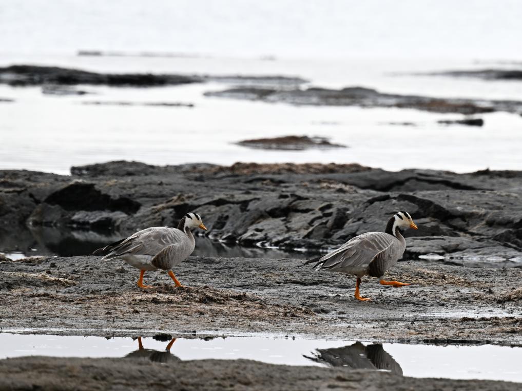 雄性斑頭雁守護在雌性斑頭雁身邊