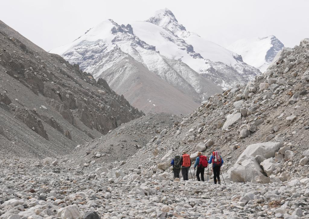 德諾埃爾兄弟和隊(duì)友們正在離開珠峰登山大本營前往更高海拔的營地(5月18日攝)。新華社記者 丁汀 攝