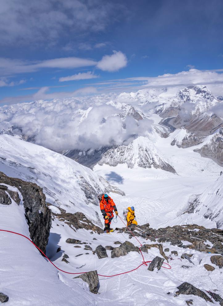 登山者正在攀登珠峰(5月22日攝)。新華社發(fā)(哈康·埃蘭森 攝)