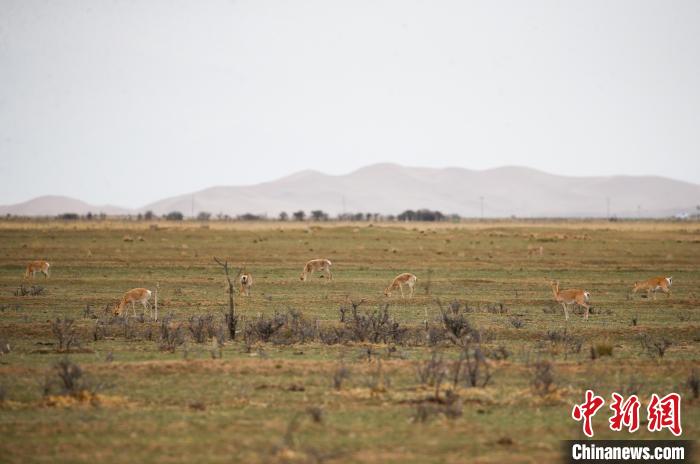 6月5日,成群普氏原羚在位于青海湖北岸的青海省海北藏族自治州剛察縣哈爾蓋鎮(zhèn)境內的草原上覓食、漫步。普氏原羚是世界上最瀕危的野生動物之一,現(xiàn)僅分布于青海湖環(huán)湖部分區(qū)域,是青海湖旗艦物種。目前,普氏原羚野外種群數(shù)量從監(jiān)測之初不足300只恢復至3400余只。馬銘言 攝