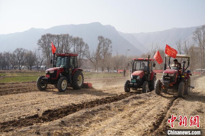 圖為青海省海南藏族自治州貴德縣拉西瓦鎮(zhèn)藏族村民正在進行機械耕作。馬銘言 攝