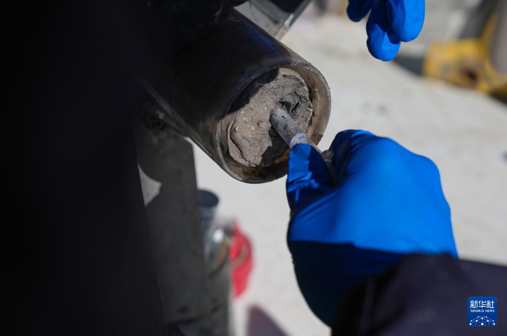 7月11日,鉆探人員正在提取湖泊巖芯。新華社記者 晉美多吉 攝