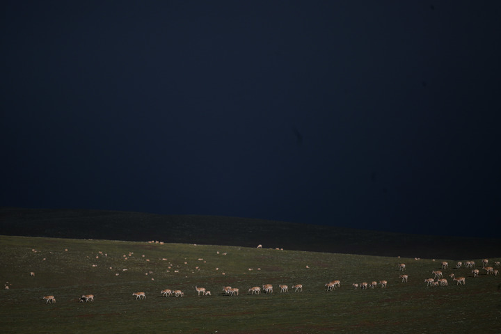 每年5月至7月,來(lái)自青海三江源、新疆阿爾金山、西藏羌塘的雌性藏羚羊會(huì)遷徙到可可西里卓乃湖,待產(chǎn)仔后再攜幼仔返回原棲息地。