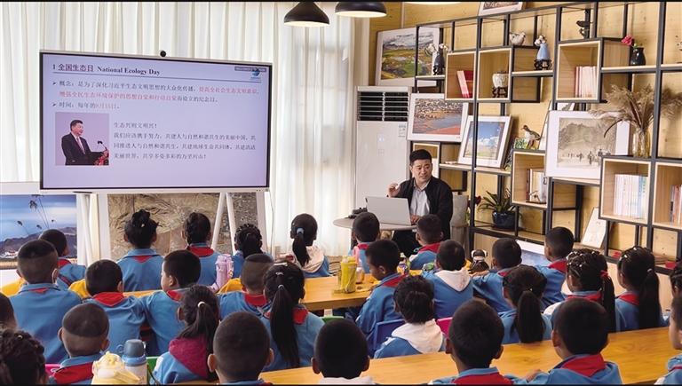 中國(guó)科學(xué)院地理科學(xué)與資源研究所為小朋友科普“全國(guó)生態(tài)日”。記者 王靜 攝