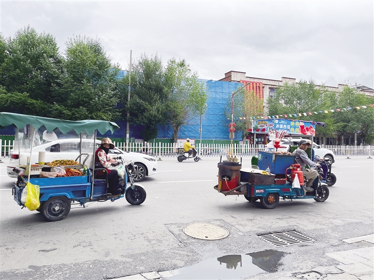 以往,布達(dá)拉宮西側(cè)沿街商鋪的“店外店”經(jīng)營現(xiàn)象十分普遍,街道顯得雜亂無章。經(jīng)過一系列整治,目前沿街商鋪均已實(shí)現(xiàn)了店內(nèi)經(jīng)營,整條街道變得干凈整潔,面貌煥然一新。在宗角祿康東門區(qū)域,以往流動(dòng)商販聚集、占道經(jīng)營的現(xiàn)象也十分嚴(yán)重。這些商販不僅妨礙了交通,還存在隨意變道、逆行等危險(xiǎn)行為,給過往行人帶來了極大的安全隱患。為了改善這一狀況,專項(xiàng)整治工作專班將流動(dòng)商販治理作為重點(diǎn)內(nèi)容,通過加強(qiáng)巡查、安排城管執(zhí)法人員蹲點(diǎn)等方式,有效遏制了該區(qū)域的流動(dòng)商販問題。如今,宗角祿康東門已難覓流動(dòng)商販的身影。