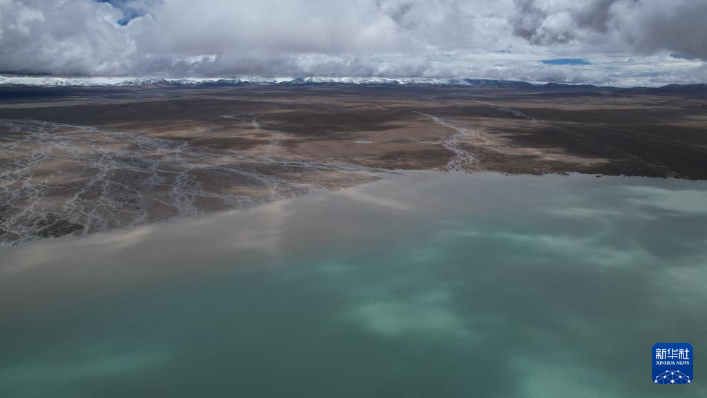 這是9月8日拍攝的令戈錯,遠(yuǎn)處為普若崗日冰原(無人機(jī)照片)。新華社記者 劉詩平 攝