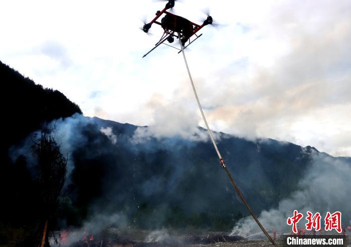 圖為滅火無(wú)人機(jī)實(shí)施滅火。費(fèi)賢浩 攝