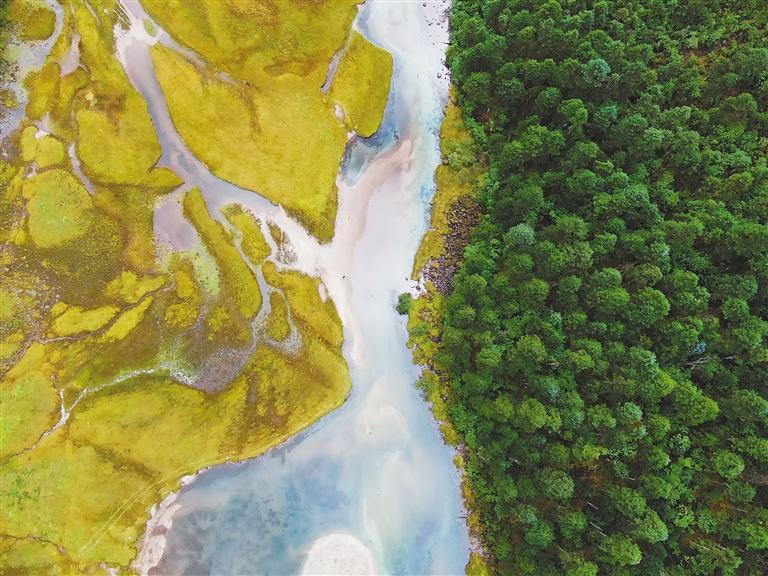 圖為航拍林芝市巴宜區(qū)魯朗鎮(zhèn)達(dá)才錯(cuò)附近的森林與濕地風(fēng)景。文/圖 記者 謝筱純 王珊