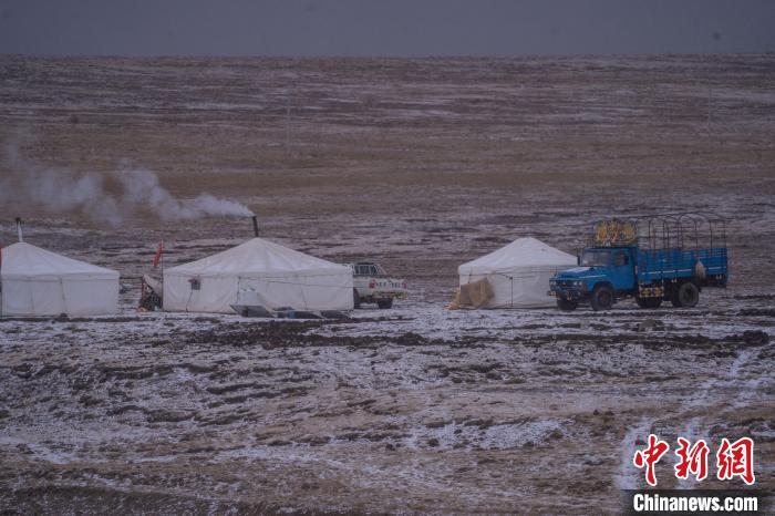 10月23日,西藏自治區(qū)那曲市安多縣多瑪鄉(xiāng)牧民在雪中放牧。當(dāng)日,一場(chǎng)雪將藏北草原裝扮得如詩(shī)如畫。牧民們?cè)谶@銀裝素裹的天地間,開始了雪中放牧的生活。牛羊在雪地中悠閑覓食,牧民駕駛著摩托車,在雪中放牧,形成了一幅動(dòng)人的風(fēng)景畫。圖為牧民在草原上搭建的帳篷。中新社記者 貢嘎來松 攝