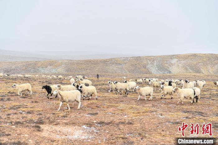 10月23日,西藏自治區(qū)那曲市安多縣多瑪鄉(xiāng)牧民在雪中放牧。當(dāng)日,一場(chǎng)雪將藏北草原裝扮得如詩(shī)如畫。牧民們?cè)谶@銀裝素裹的天地間,開始了雪中放牧的生活。牛羊在雪地中悠閑覓食,牧民駕駛著摩托車,在雪中放牧,形成了一幅動(dòng)人的風(fēng)景畫。圖為羊群在草原上覓食。中新社記者 貢嘎來松 攝