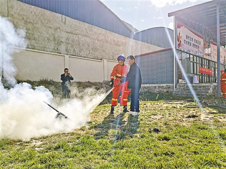 西藏森林消防總隊聯合拉薩市應急管理局為達孜區(qū)群眾和干部職工講解逃生自救方法,進行救援技能展示,并組織滅火模擬演練。通過互動交流、觀摩體驗,充分調動當地群眾參與應急、共護安全的熱情,使其在沉浸式體驗中提高面對突發(fā)情況的應急避險意識和快速反應能力,筑牢思想和行動上的“防火墻”。