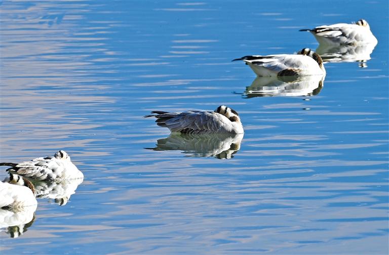 初冬時節(jié),傍晚時分,漫步拉薩當熱西路,遼闊的拉魯濕地國家級自然保護區(qū)(以下簡稱“拉魯濕地”)映入眼簾,俯視近處,水質清澈、水量充沛、水面開闊且與拉魯濕地互相補水的中干渠在高大的防護林下靜靜流淌,水面上一群群赤麻鴨悠閑地游來游去;遠處布達拉宮巍然矗立,濕地空氣里彌漫著泥土和植物的芳香,令人心曠神怡。身處喧鬧的市區(qū)卻能如此美景,真是“世外桃源”。