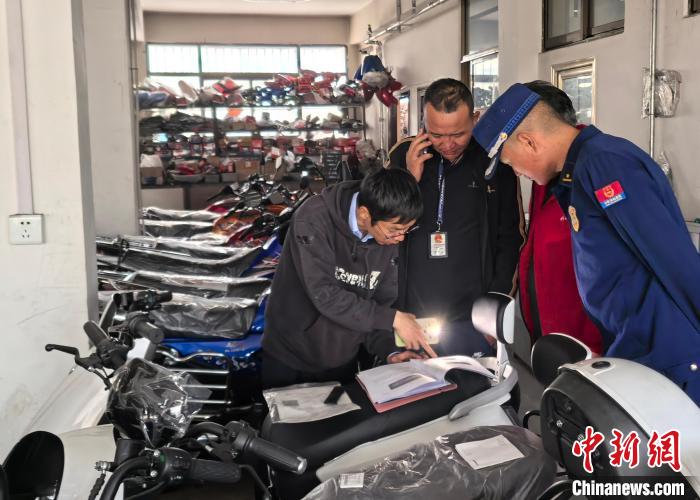 圖為西藏阿里噶爾縣消防救援大隊聯(lián)合相關(guān)部門對電動自行車銷售門店進(jìn)行檢查。魯茸次里 攝