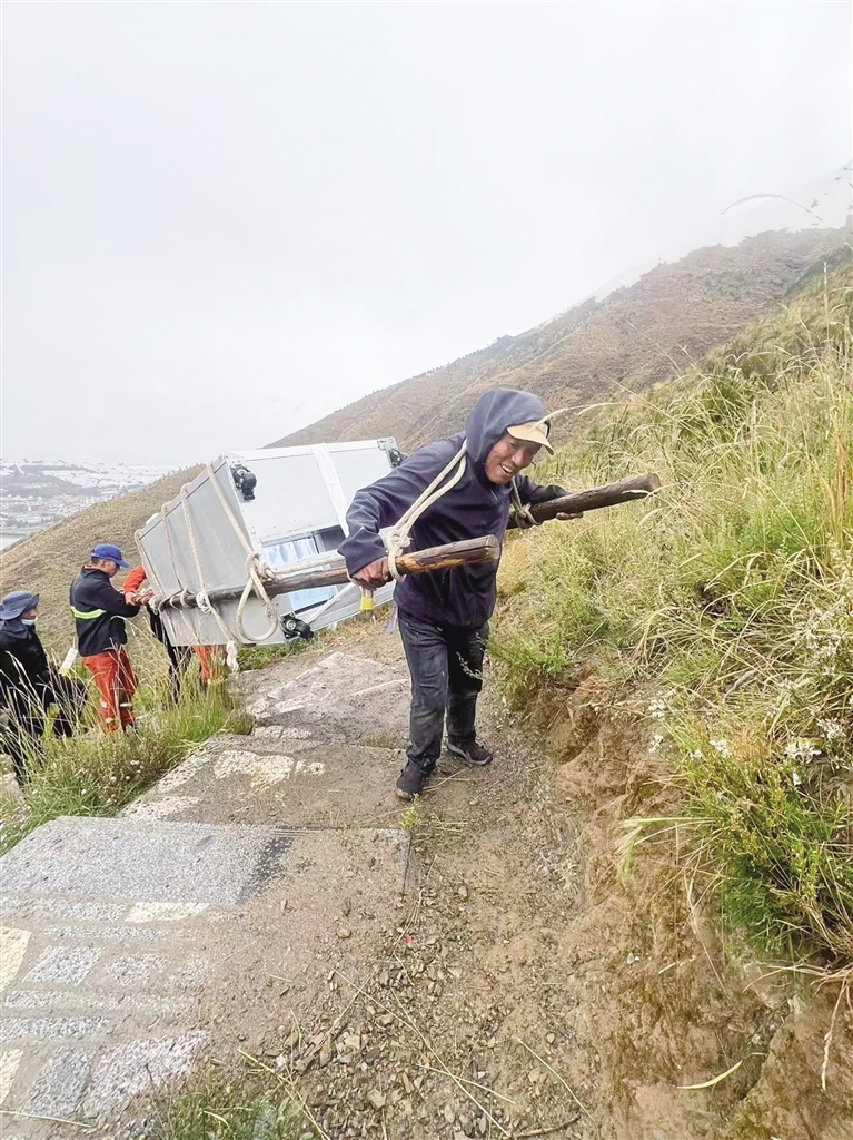 為了方便游客喝到平價(jià)飲料,單位引進(jìn)了12臺售賣機(jī),安裝在公園各個(gè)角落,售賣機(jī)里各種飲料、礦泉水等商品跟超市售賣的價(jià)格基本一致。扎西曲培說,他們將售賣機(jī)安裝在海拔4000米的地方,過程是艱難的。一臺售賣機(jī)重約400斤,車輛上不去,他和森林消防隊(duì)員通過人背肩扛,一步步抬上去的。目前,在南山公園“祖國萬歲”的山峰處,大家口渴了,拿出手機(jī)掃描一下,即可喝到平價(jià)的礦泉水。