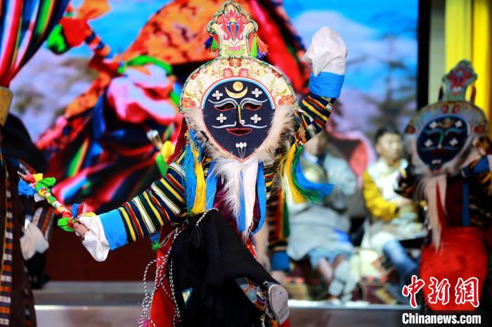 圖為啟動(dòng)儀式上的藏戲表演?!×籂?攝
