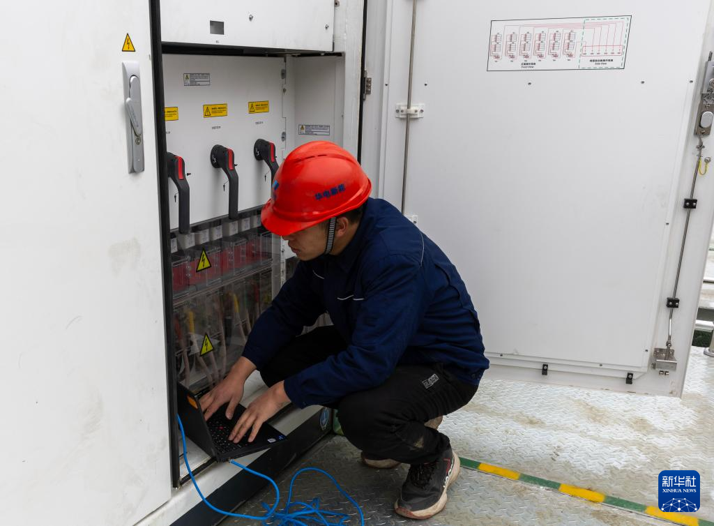 在華電西藏才朋光伏電站升壓站,工作人員正在檢查設(shè)備。新華社記者姜帆 攝