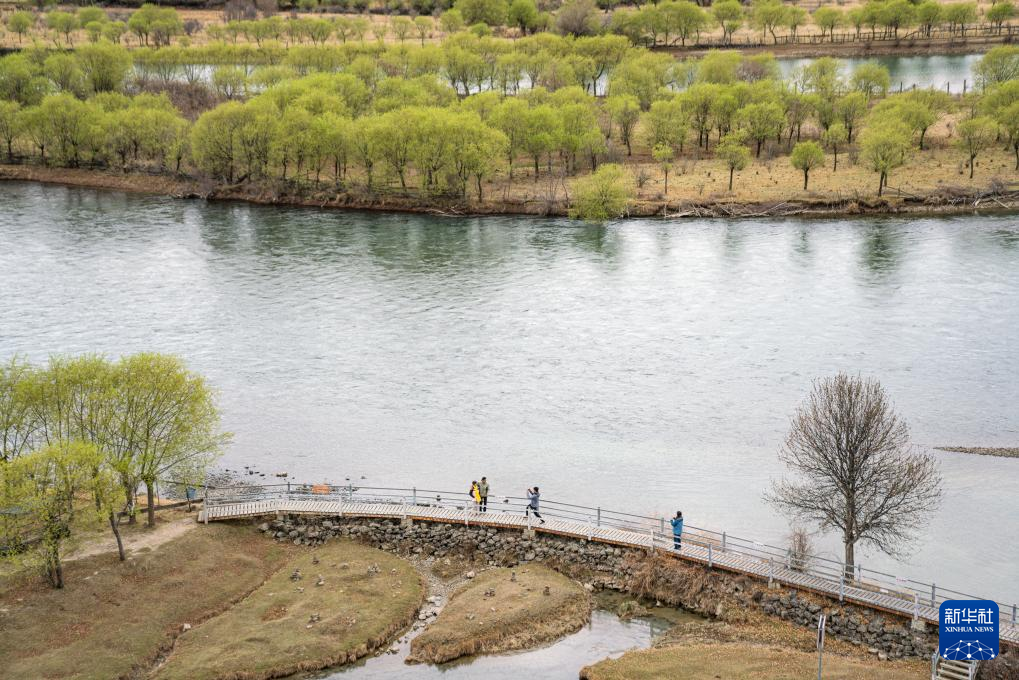 4月4日,游客在雅尼國家濕地公園欣賞風景。新華社記者 丁增尼達 攝