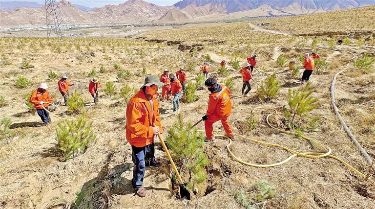 圖為4月3日,拉薩市堆龍德慶區(qū)德陽村的植樹造林現(xiàn)場(chǎng)。記者 白瑪澤旺 攝