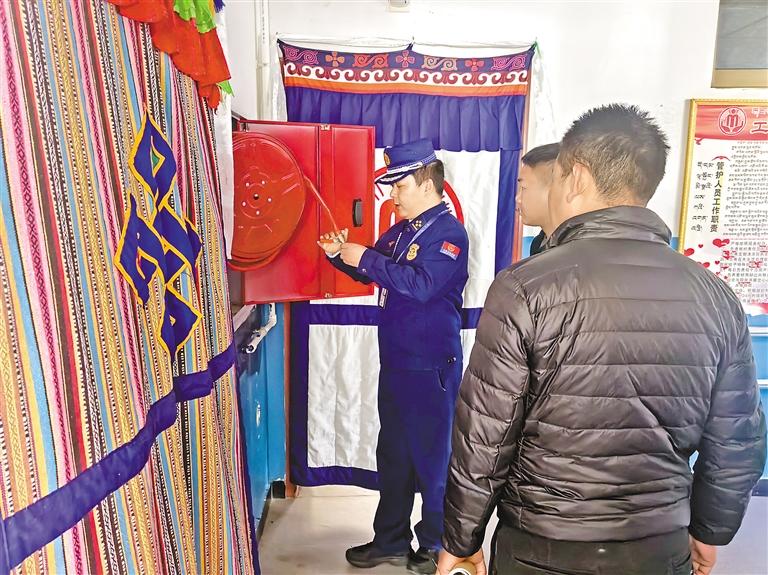 林芝市工布江達縣消防救援大隊宣傳人員檢查養(yǎng)老機構(gòu)的消防設施設備。通訊員 才旺多吉 攝