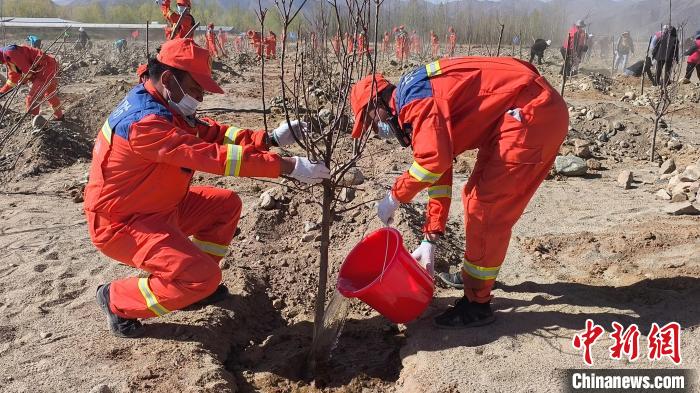 圖為日喀則市森林消防大隊(duì)義務(wù)植樹活動(dòng)現(xiàn)場(chǎng)。洛桑頓珠 攝