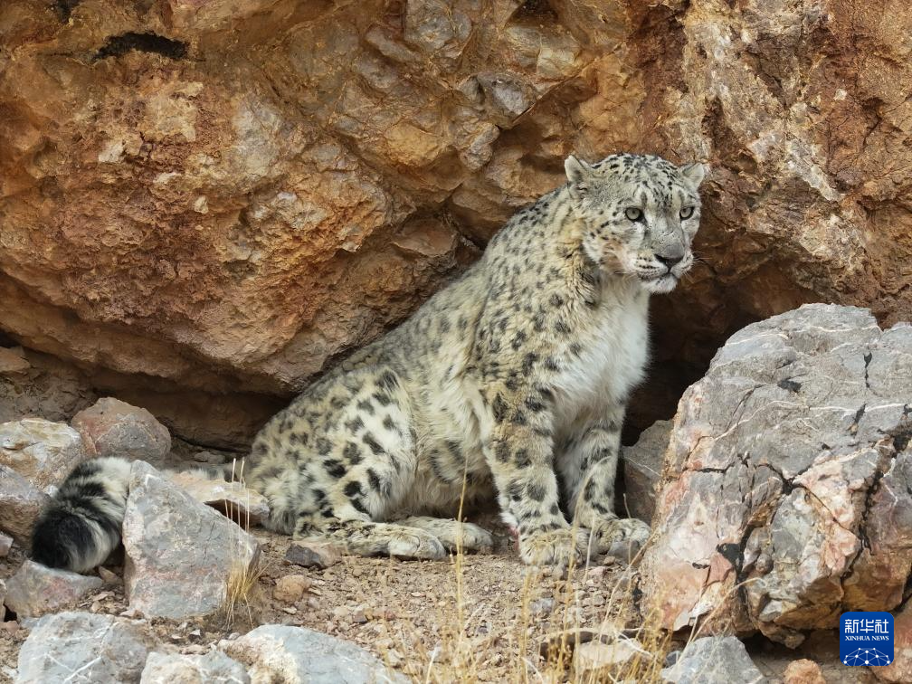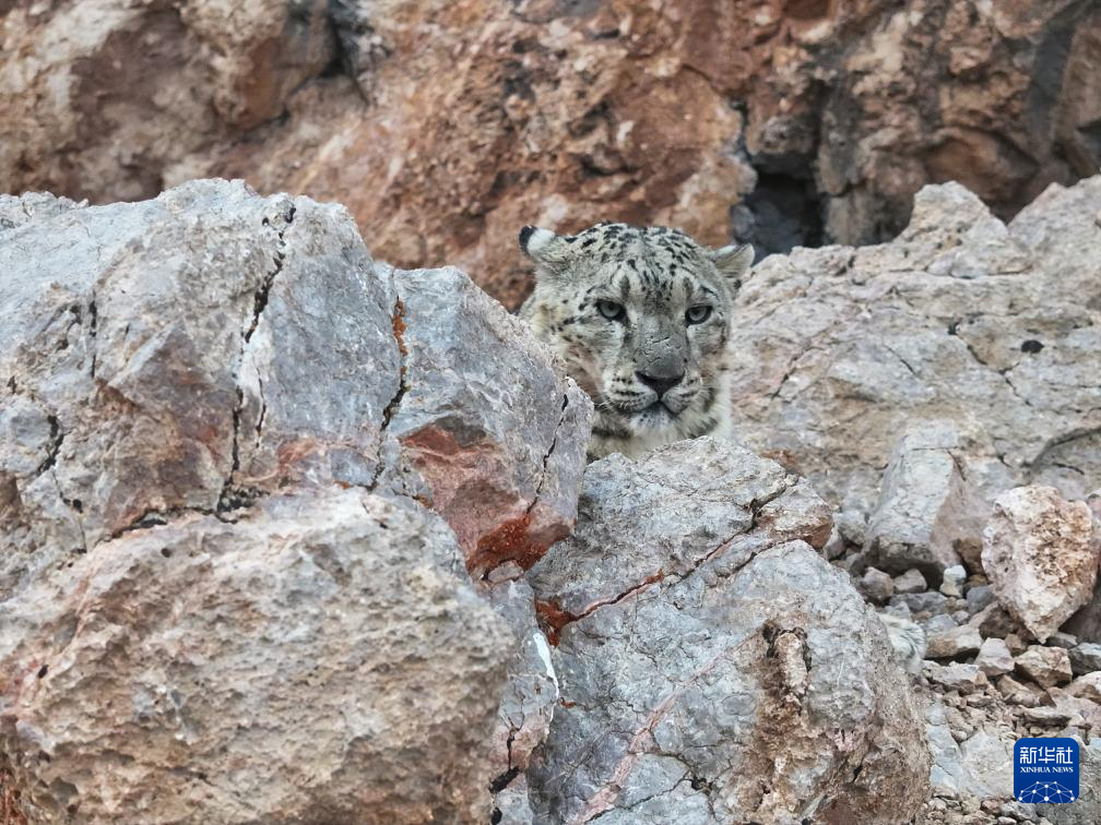 西藏阿里改則縣改則鎮(zhèn)玉多村附近巖山區(qū)域拍攝到的國家一級保護動物雪豹(4月18日攝)。