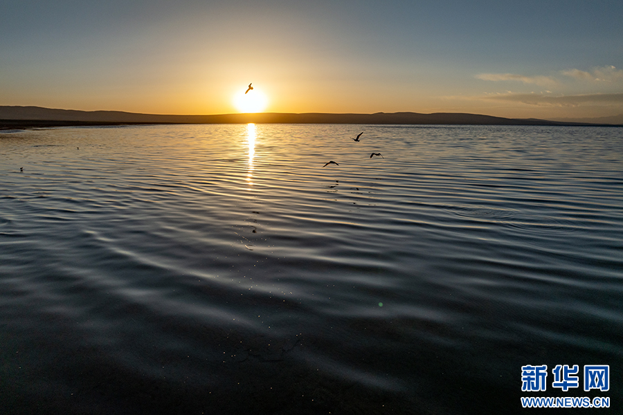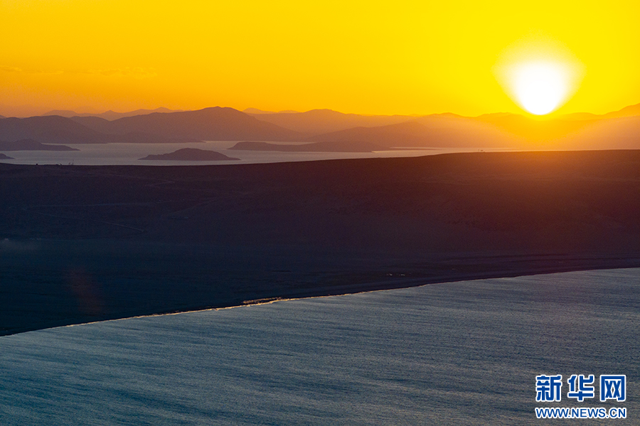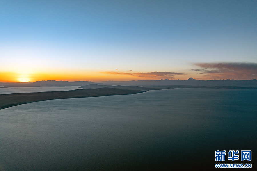夕陽(yáng)下的瑪旁雍錯(cuò)(6月9日攝,無人機(jī)照片)。新華網(wǎng) 旦增努布 攝