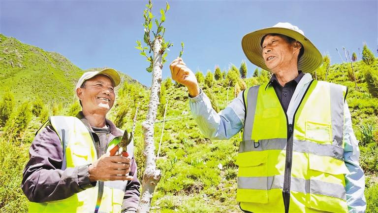 工程帶來(lái)的不僅是生態(tài)效益,更有可觀社會(huì)效益。項(xiàng)目實(shí)施以來(lái),累計(jì)吸納3541人次墨竹籍群眾參與建設(shè)。從挖穴栽苗到日常養(yǎng)護(hù),當(dāng)?shù)厝罕姵蔀樯鷳B(tài)建設(shè)主力軍。達(dá)瓦次仁感慨:“在家門口就業(yè),每日收入200多元,還能參與家鄉(xiāng)綠化,內(nèi)心踏實(shí)又滿足。”