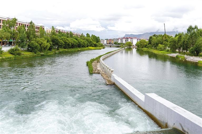 在拉薩市城關區(qū)兩島內(nèi)河綠色生態(tài)廊道提升工程拍攝的分水堰。