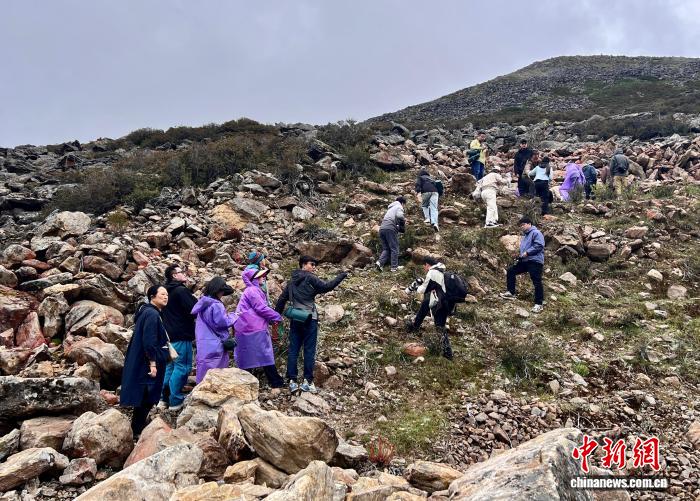 圖為項(xiàng)目啟動(dòng)當(dāng)天,50余名專家學(xué)者、媒體代表開展色季拉山生物多樣性科考活動(dòng)。潘旭臨 攝