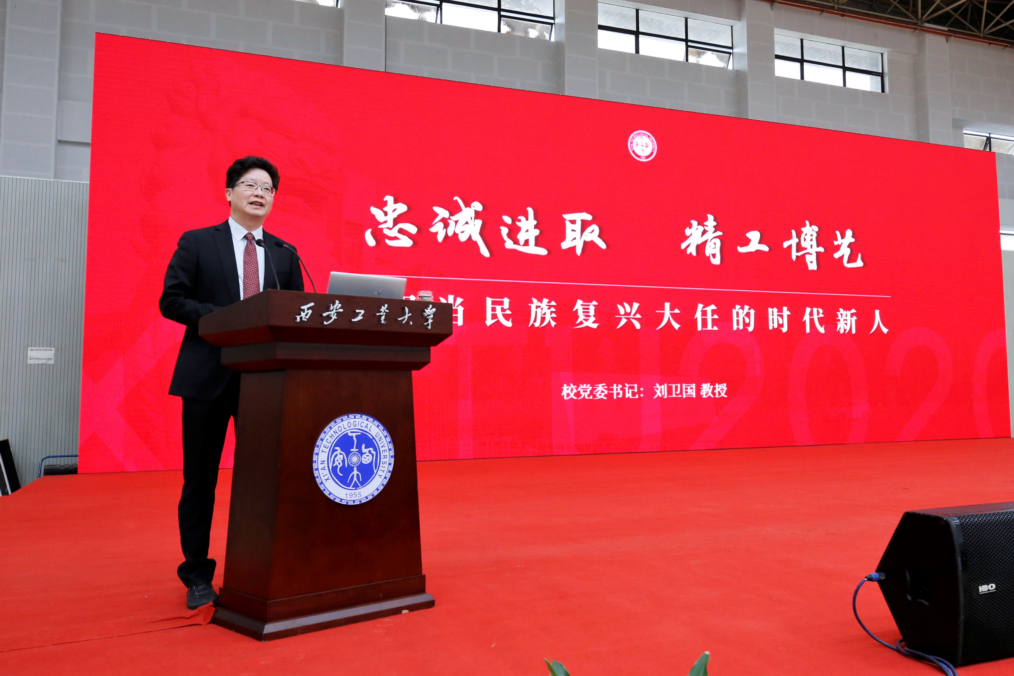 西安工業(yè)大學(xué)校黨委書(shū)記劉衛(wèi)國(guó)在2020級(jí)新生開(kāi)學(xué)典禮上發(fā)表講話(學(xué)校供圖)