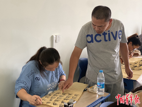 蔡偉給學(xué)生上書法課。王景爍攝