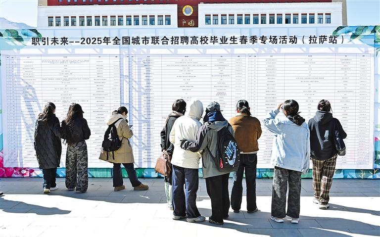 近日,由拉薩市人力資源和社會保障局主辦,西藏大學、西藏民族大學協(xié)辦的2025年全國城市聯(lián)合招聘高校畢業(yè)生春季專場活動在西藏大學納金校區(qū)舉行。招聘會提供了文秘、出納、會計、醫(yī)輔、客服等1650個崗位,吸引了不少學生前來應聘。