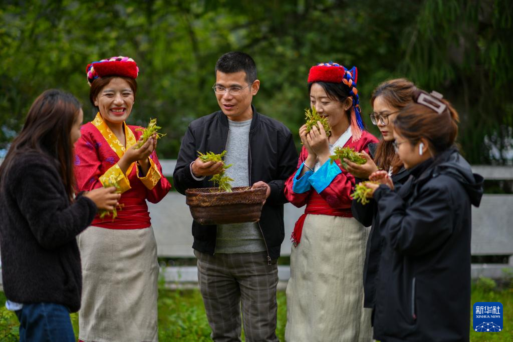 莓茶,學(xué)名顯齒蛇葡萄,原產(chǎn)于湖南張家界,是近年來十分流行的健康飲品,其種植效益遠(yuǎn)高于目前勒布溝的傳統(tǒng)綠茶。通過試飲,尼瑪卓瑪感覺莓茶口感不錯(cuò)?!皠?cè)肟诘臅r(shí)候挺苦,但是回味甜甜的,特別好。”她說。
