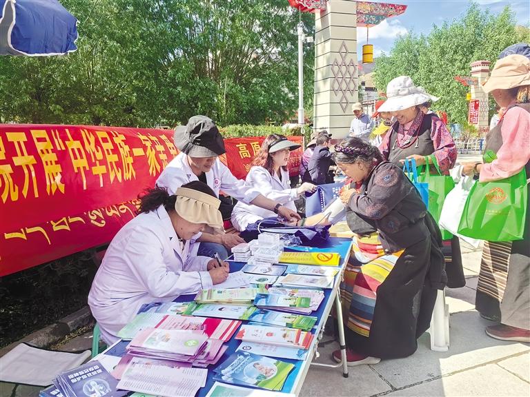 圖為仁布縣衛(wèi)健委開展以“中華民族一家親·愛心義診送萬家”為主題的免費(fèi)義診活動(dòng)。