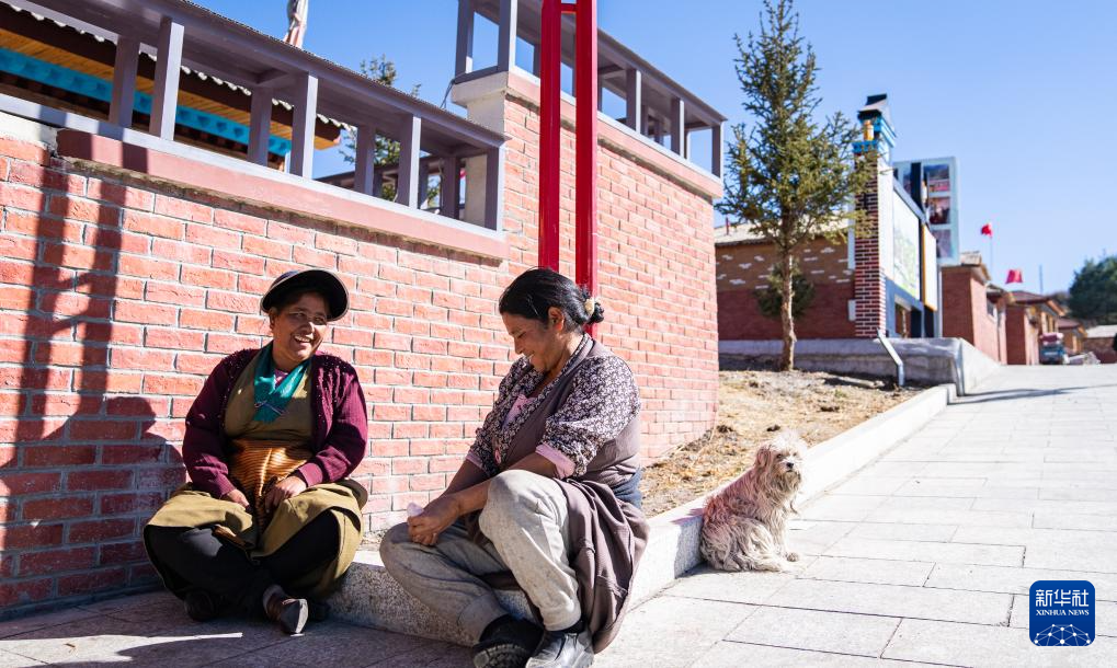 12月15日,達(dá)曼新村的婦女坐在家門口聊天。新華社記者 丁增尼達(dá) 攝