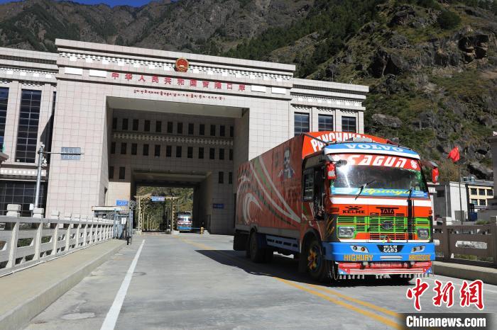 圖為尼泊爾貨車從吉隆口岸國門經(jīng)過。肖富貴 攝