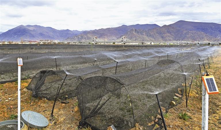 藏建物生鄉(xiāng)土苗木培育基地內(nèi)的全自動(dòng)灌溉設(shè)備。記者 次仁平措 攝