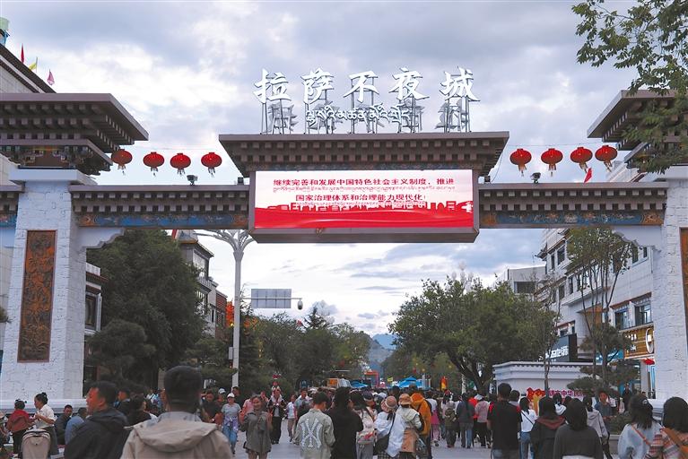 開街首日,藏式燈籠與LED光帶將整條街道裝點得宛如銀河落地,標志著拉薩正式邁入“全域全時旅游”新時代。