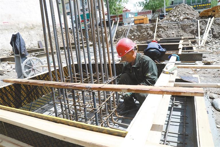 圖為施工人員在緊張有序地施工。記者 格桑倫珠 攝